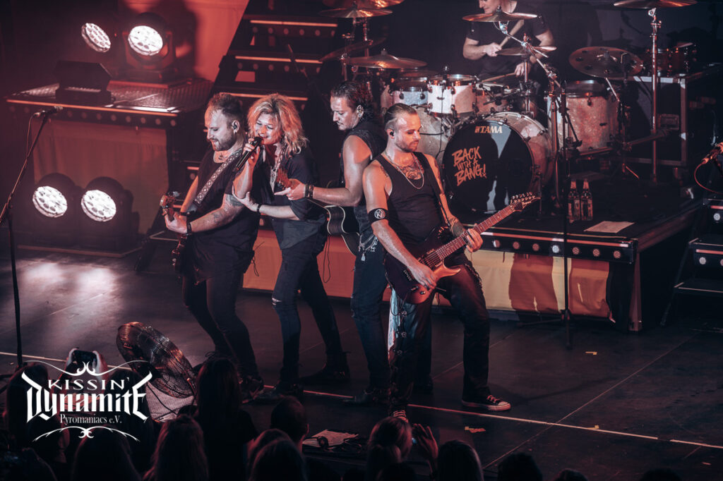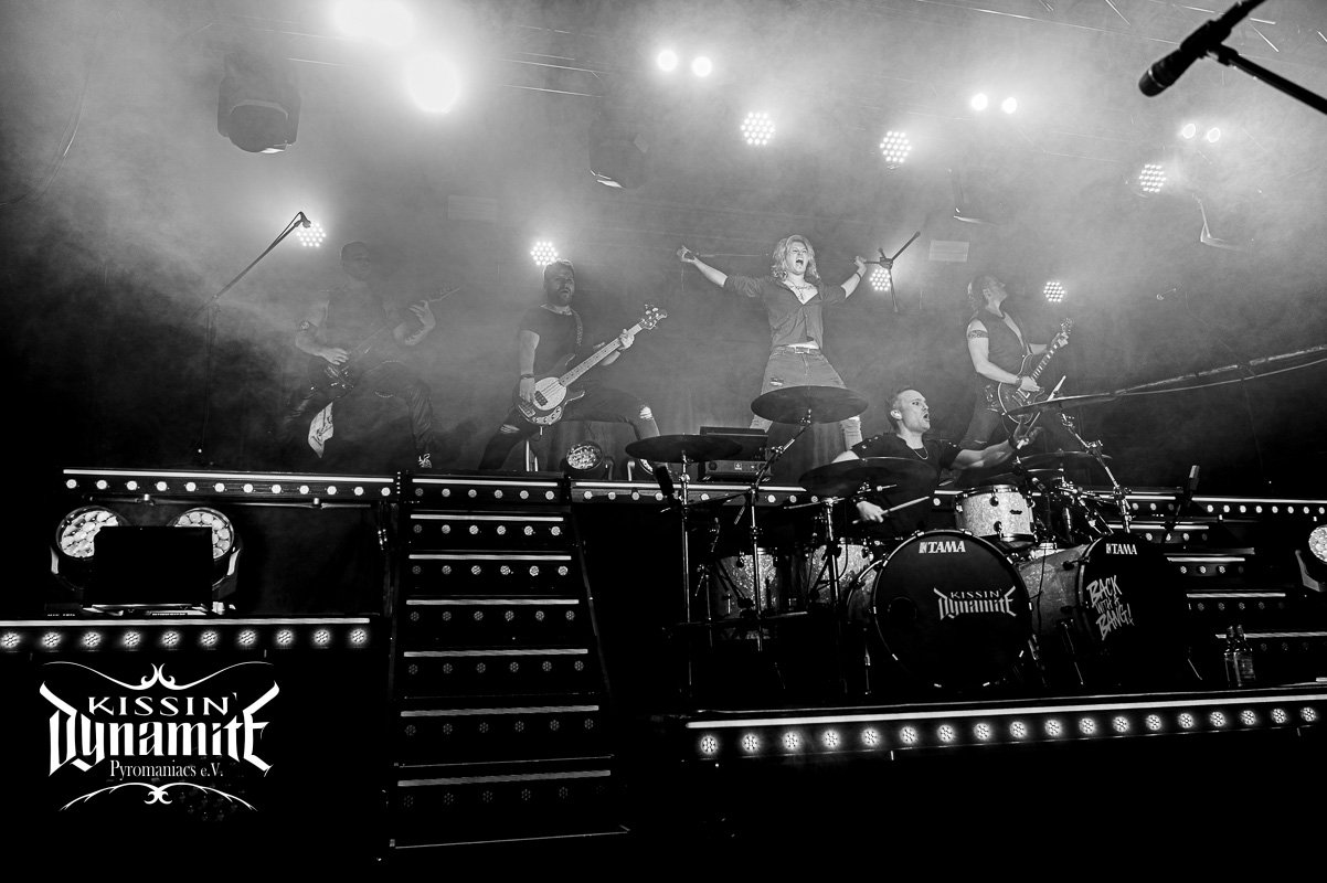 Kissin´Dynamite rocken die Bühne und spielen fast die gleiche Show wie schon auf der ersten Album-Tour. Hier wäre noch Platz für Erneuerungen gewesen. Irgendwie hatte man doch noch auf den Überraschungseffekt gewartet. Auch die Ansagen und Abläufe ähneln sehr stark den bisherigen.