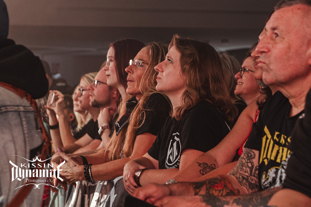 Die mich alle super nett aufgenommen haben. Als wir alle vollzählig waren, durften wir an der Menschenmenge vorbei und direkt als erstes in die Halle hineingehen. Das war schon ein spannendes und zugleich schönes neues Gefühl, das ich noch nicht kannte. 😍 Zusätzlich war es super schön bekannte Gesichter wieder zu sehen 🥰und natürlich neue Pyromaniacs zu treffen.. (Kennengelernt haben wir uns beim SummerBreeze bei der Autogrammstunde von Kissin‘ Dynamite)🖤